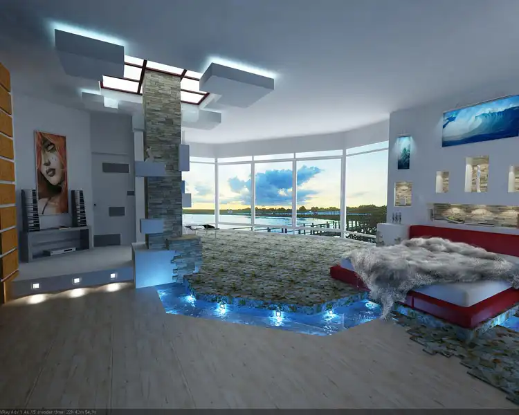 Солидарен с ксенией понравилась идейка "с синей подсветкой ступеньки" там внизу вроде бы вода, а какой вид из окна.......респект монтелл