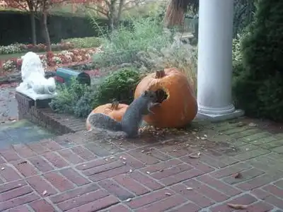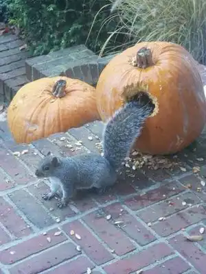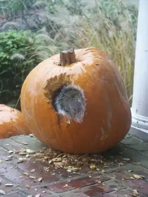 белки готовятся к празднику хэллоуину!!!вырезала уже один глаз!!!
