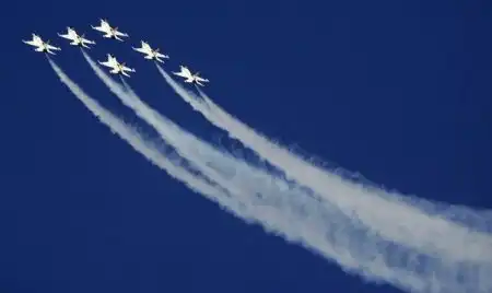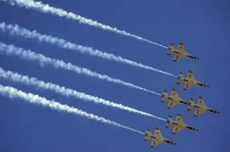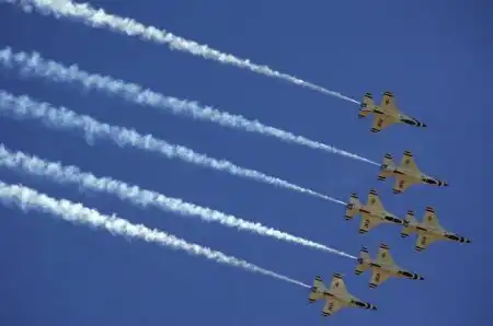 У них свои шоу, у нас-свои. У амеров тоже есть хорошие пилоты и хорошая техника. Пускай они хвалятся своими F117, B2 и "Мустангами"(хорошая машина, кстати), а мы будем продолжать удивлять весь мир нашими МиГами и Сушками, а также мастерством пилотажных групп. Кто круче? Надеюсь, не доведётся проверять в боевых условиях.