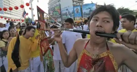 Очередной Вегетарианский Фестиваль в Таиланде. Фотографии не для слабонервных. Подумайте прежде чем нажимать далее!