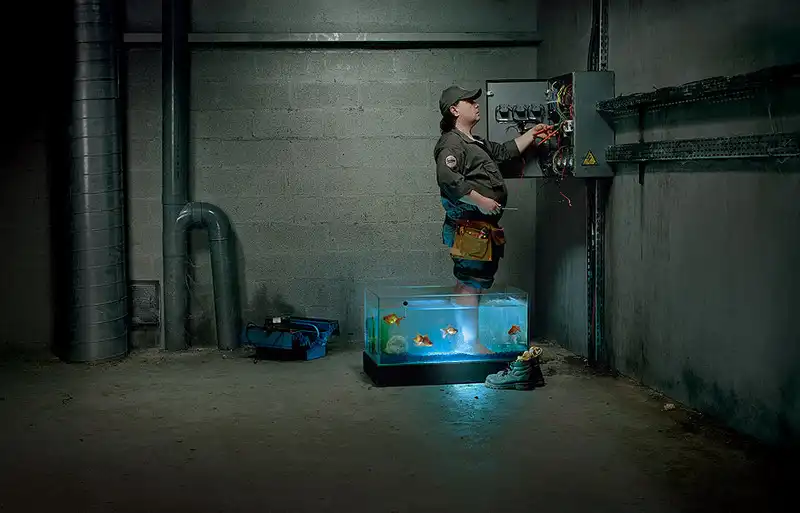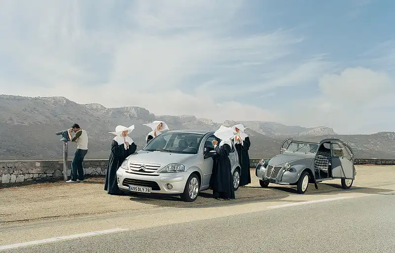 Третий снимок - суть шутка на тему электроподсветки аквариумов, не более. Пятый - рекламная реминесценция в сторону тему монахини из "Фантомаса", которой пора, наконец, сменить старый "Ситроен" на новый