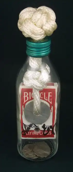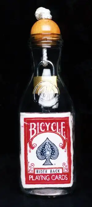 Прикольно, я вспоминаю детство, когда мы с отцом проделывали нечто, подобное, у моего отца получалось засовать в бутылку из под пива "Жигулевское", тогда самое популярное и единственное пиво продавали, так вот он засовывал пачку "Беломорканала" и пачку спичек. Это не сложно, я то же этому научился, а вот ботинок, книжку, кубик, сложно… А карты, самое легкое……
