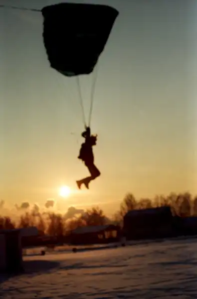 Наверно лучше не с парашюта, а просто вместе с ним прыгать, для здоровья полезней, так совет бывалого!Пост классный,зимой еще не прыгал, ранней весной да,надо попробывать, как ето с такой высоты и в сугроб Ух-
