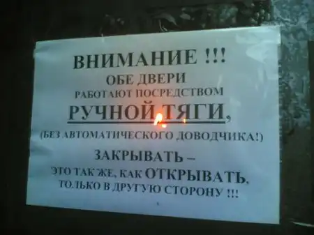 Видили фото с объявлением о необходимости закрывать дверь? А вот в общаге ТГПУ висят объявления с точностью, да наоборот( о том, что двери закрывать не нужно, они закрываются сами!).