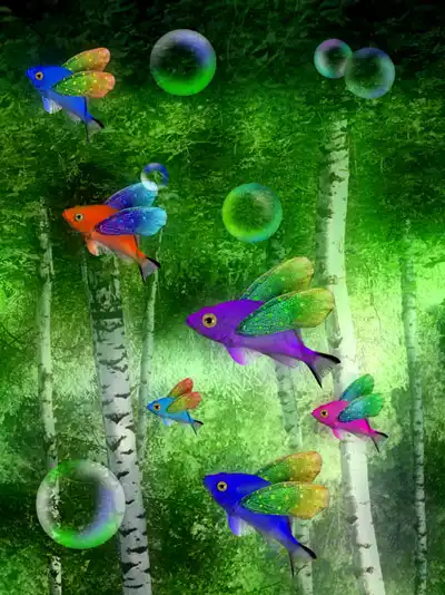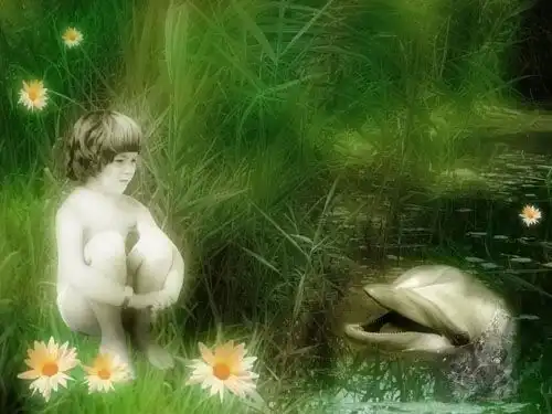 Дельфин в пруду..летняя сказка!а кыска с "рыбным" деревом это классно!!