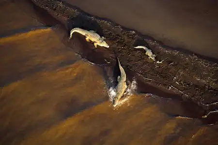 это взгляд со спутника? на предпоследней фотке вода какая прозрачная. если б не крокодилы даже и не понял бы, что это вода