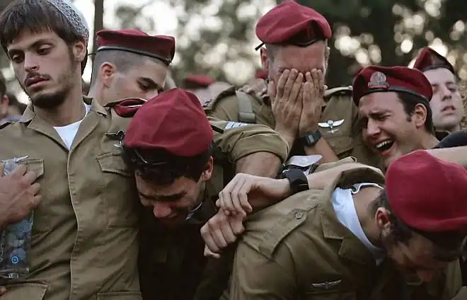 Израильскому десантнику Вифтаху Шраеру был всего 21 год, когда он погиб в сражении за опорный пункт Хезболлы в Бинт Жбейле, Южный Ливан; это его близкие на похоронах в Хаифе