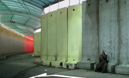 Тоннельный вид (в контрольной точке Эрез, которая соединяет Израиль с Сектором Газа, путешественник отдыхает на бетонном блоке)