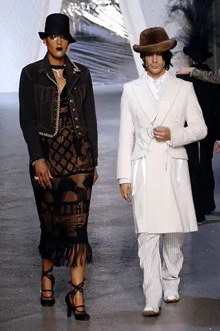 гальяно как всегда не может без эпатажа...а на последней уж очень он похож на восковую фигуру