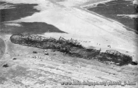Через 32 сек после взрыва, дирижабль, более чем в 2 раза превышающий по длине футбольное поле, напоминал фантастический обугленный скелет из изогнутого металла. Эта катастрофа унесла 36 человеческих жизней...