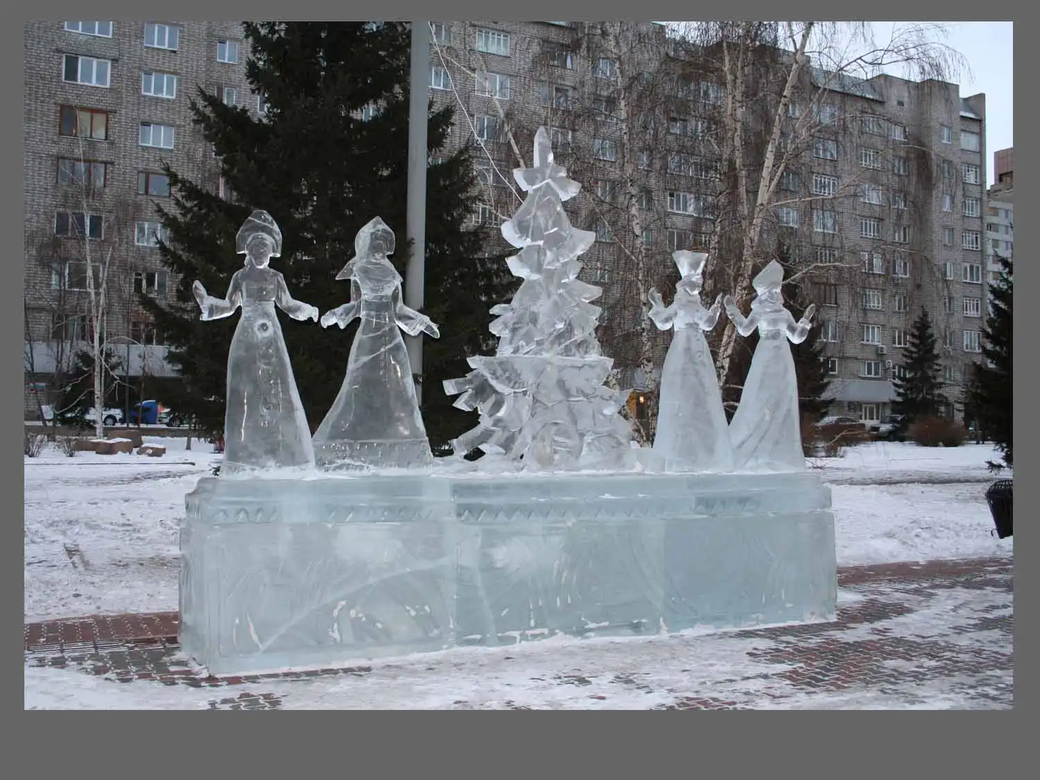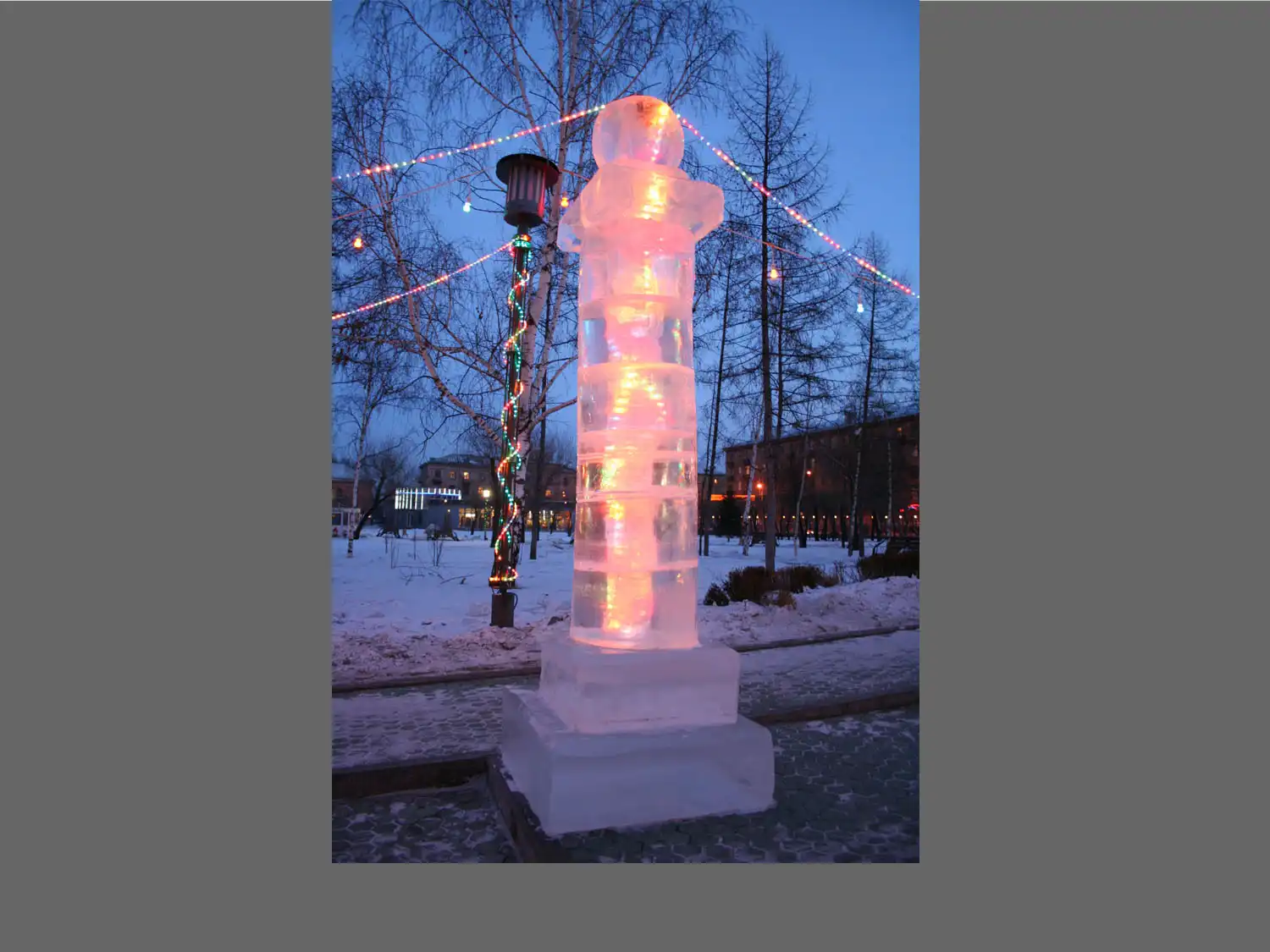 Приезжайте в Шегарку (с. Мельниково) и любуйтесь, у нас второй год уже ледяные фигуры с подсветкой ставят около администрации.