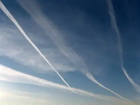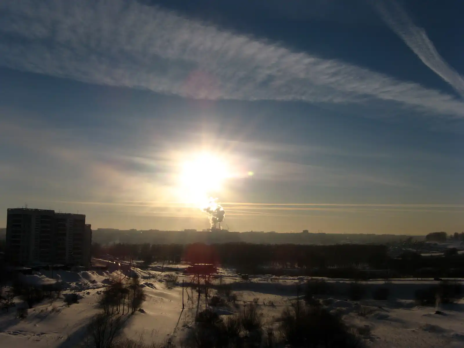 Ну, а это - для тех, кто вдруг не видел сегодня неба над городом с относительно большим числом самолетных шлейфов на нём.