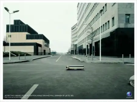 Социалка от SAAB. После пары выпивок, ваше внимание при вождении, снижается на 76%.