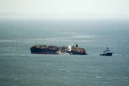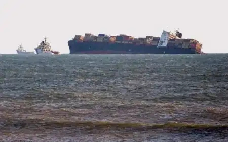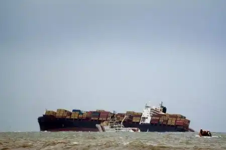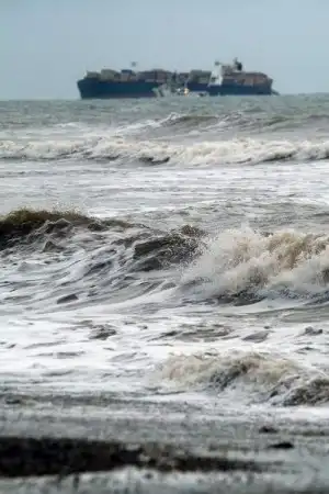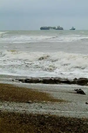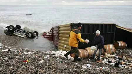 У берегов Англии терпит бедствие контейнеровоз «Наполи». Он получил пробоину и дал сильный крен.