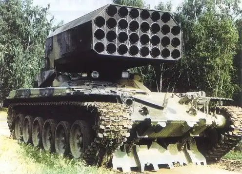 Создание нового оружия Управление РХБЗ доверило тандему – Омскому КБ транспортного машиностроения, знаменитому своими танками Т-80У, и Мотовилихинским заводам, из ворот которых вышли реактивные системы залпового огня «Град», «Ураган» и «Смерч». Заводы оправдали доверие, и такая установка была создана. Первый вариант назывался просто ТОС, а второй, ТОС-1, получил игривое название «Буратино».