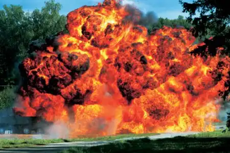 Боеприпас объемного взрыва работает по схеме: создание облака «смесь–воздух» – подрыв его. В современных боеприпасах применяют смесь жидкостей (типа пропилнитрата) и легких металлов (типа магния в виде мелкого порошка). Для того чтобы такая смесь была однородной, используют перемешивающие устройства, работающие в момент полета боеприпаса к цели. Важно, чтобы разрывной заряд разрушил оболочку и создал облако, не дав смеси сразу сдетонировать. От обычных ВВ аэрозоль отличает скорость детонации (7000–9000 и 1500–3000 м/с соответственно) и то, что ударная волна хоть и слабее, но затухает медленнее и сохраняется дольше. Поэтому воздействует такой боеприпас на большую плошадь. Теперь о знаменитом «вакуумном» эффекте. Поскольку облако состоит из смеси и воздуха, то в момент подрыва весь кислород в облаке вступает в реакцию. Так как процесс быстрый (доли секунды), то после детонации, когда давление скачком поднимается, следует резкое снижение давления ниже атмосферного примерно на 160 мм ртутного столба. Если человек каким-либо образом выжил после взрыва (в подвале, в блиндаже), то такое резкое снижение давления приводит к гарантированной мучительной смерти – рвутся легкие, лопаются глаза и барабанные перепонки, отбиваются внутренние органы.