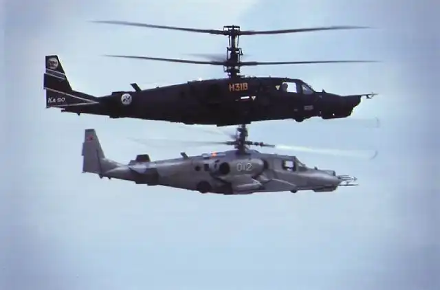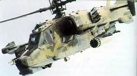 Боевой ударный вертолет Ка-50 предназначен для поражения бронетанковой и мотомеханизированной техники, воздушных целей и живой силы на поле боя. По критерию «эффективность-стоимость» он не имеет себе равных среди всех существующих боевых вертолетов. Это достигнуто благодаря оптимальному сочетанию высоких значений энерговооруженности соосного аппарата, маневренности и летных данных; мощного вооружения; интегрального бортового радиоэлектронного комплекса; высоких боевой живучести и эксплуатационной технологичности. Вертолет Ка-50 разработан специалистами фирмы «Камов» по ТТЗ Министерства обороны под руководством генерального конструктора, члена-корреспондента РАН, Героя России Сергея Викторовича Михеева и построен по соосной схеме несущих винтов.Особое внимание при конструировании Ка-50 уделено удобству размещения пилота на рабочем месте, обеспечению хорошего обзора внешнего пространства, до мелочей продуманному расположению оборудования в кабине, автоматизации пилотирования и применения оружия. Обзорно-поисковая и прицельная система с высокой разрешающей способностью (23-кратное увеличения) позволяет обнаруживать, распознавать малоразмерные наземные цели и применять средства поражения на дальностях до 10 км. Нашлемная система целеуказания и прицельно-пилотажная информация, вынесенная на индикатор лобового стекла, обеспечивают пилоту применение оружия с «поднятой головой», что особенно важно для полета на предельно малой высоте.