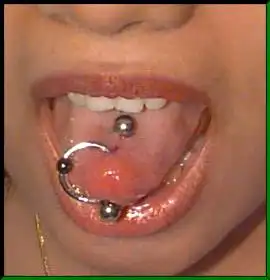 У моей сестры язык и губа нижняя проколоты. Так она фигушку круглую с языка проглотила))))))