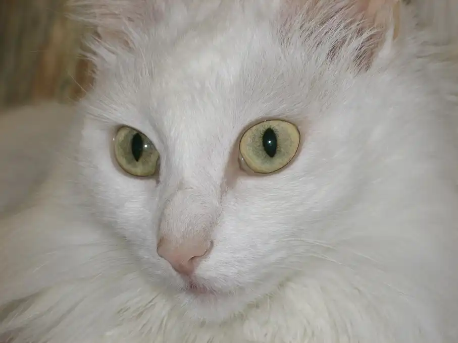 Белый кот с зелёными глазами и