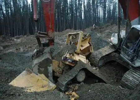 Экскаваторщика уволили в пятницу. А в воскресенье утром обнаружили на стройке такую картину.
