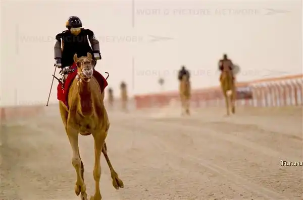 Жокеи-роботы управляются операторами в автомобилях, следующих параллельным курсом. Законодательство в Объединенных Арабских Эмиратах теперь запрещает наездников до 16 лет, так как в качестве наездников в большом количестве использовались дети, приобретенные на черном рынке, и похищенные для этого в южной Азии. Швейцарская компания K-Team воспользовалась этим обстоятельством и в 2003 году вывела на рынок роботов Kamal.