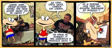 А я вообще то и не заявляю, что это мое личное творчество...Мне просто понравились комиксы и я их разместила и не скрываю, что они взяты с www.mult.ru...И не уверена, что вы любезнийший будете здесь размещать СВОЕ личное творчество, не опираясь на другие сайты...