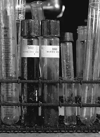 да вот как раз кислот там вряд ли много, зачем они нужны)) скорее всего, там много образцов тканей человека и химических веществ, но не кислот, а в большей мере органических всяких разных..