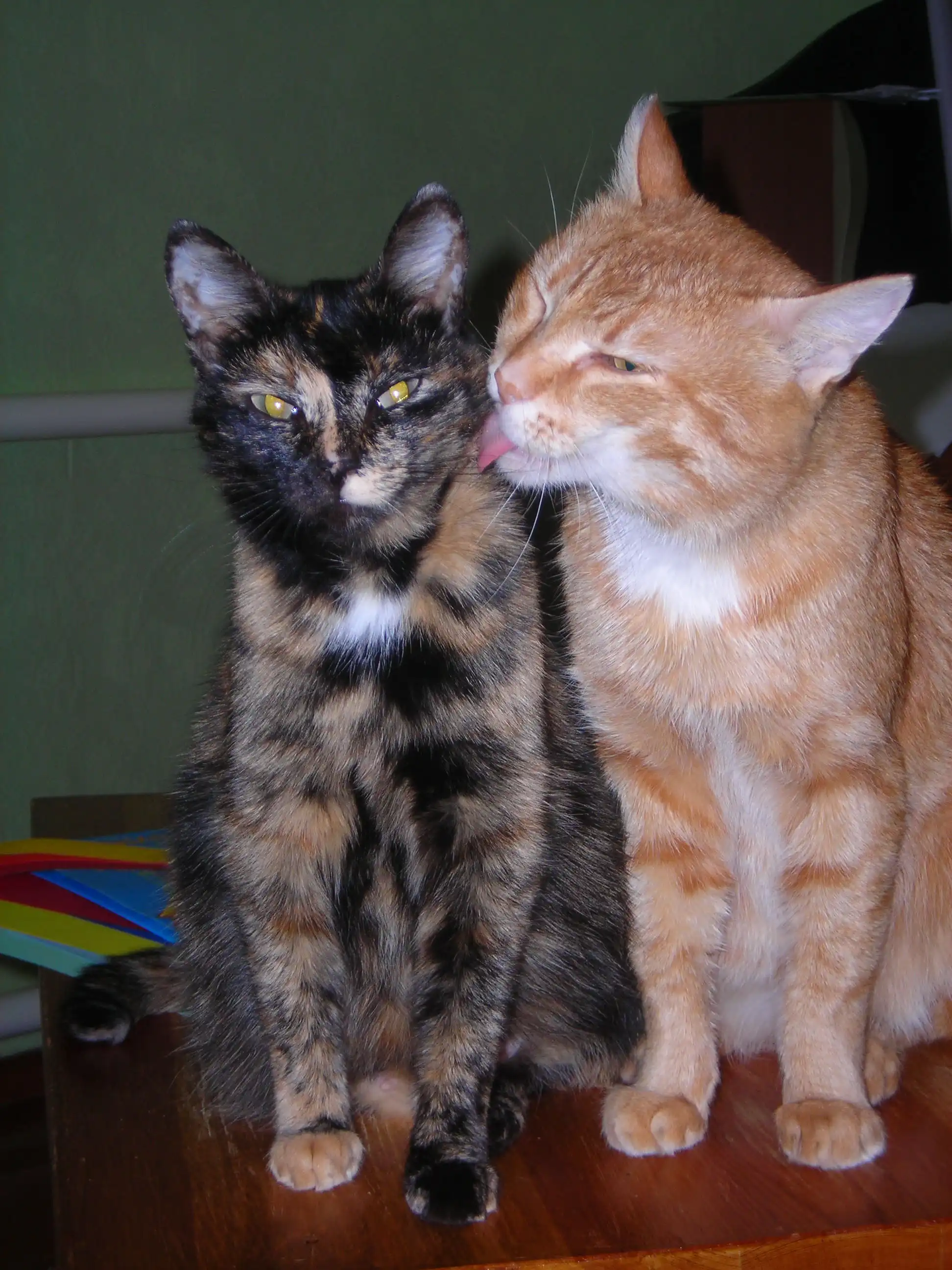 Посмотрел посты про животных, думаю чем мои хуже.Кот Рыжик подлизывается к кошке Мурке, почуял,что весна близко