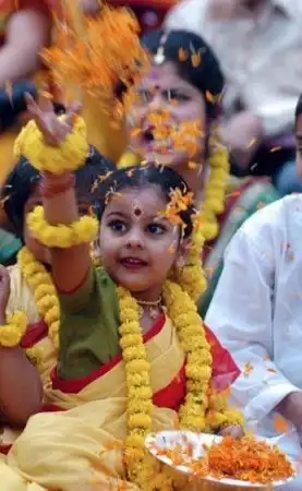 Эротический элемент в праздник привносит тема любвеобильности знаменитого бога Кришны, согласно легенде на звук его свирели, бросая мужей и дома, к нему сбегались все окрестные пастушки. И на берегу реки начинался неистовый «танец экстаза»...