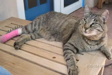 у меня у кошки задняя лапа в гипсе была, так над ней пену рвал