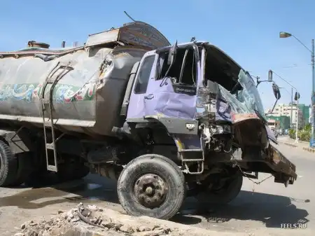 Мужик на большой скорости вошел в столб. Машина "чайника" под списание, жертв нет.