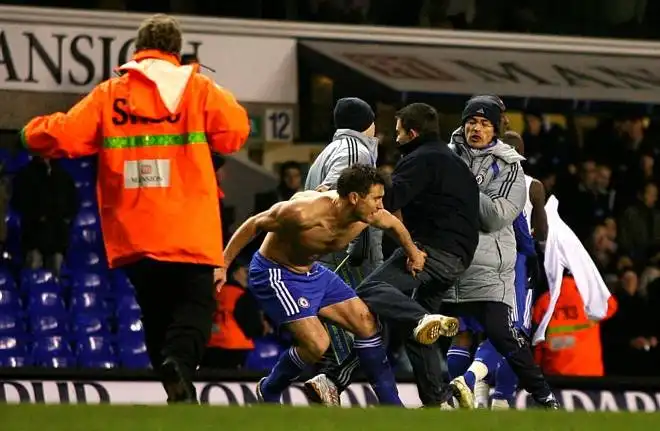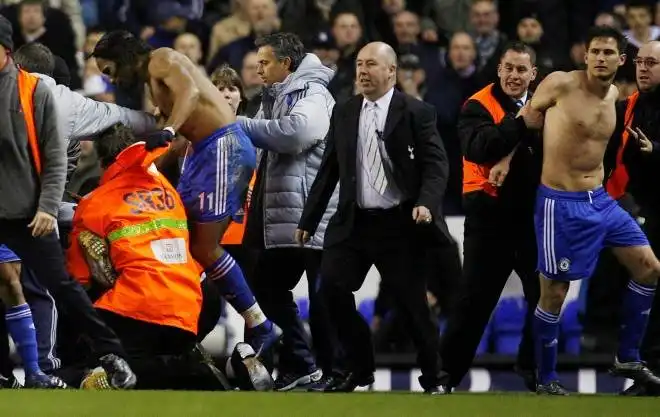 После того, как "Челси" обыграл вчера "Тотенхэм" и вышел, наконец, в полуфинал Кубка Англии, полузащитнику "Челси" Фрэнку Лампарду досталось от болельщика проигравшего клуба. Юноша прорвался на зеленый газон и попытался отметить проигрыш своей команды на лице футболиста команды гостей.