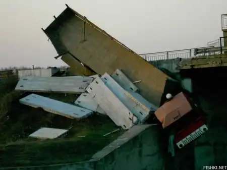 Авария на Карловском водохранилище Донецкой области. Отказали тормоза. Водила жив. Искупался тока трошки.