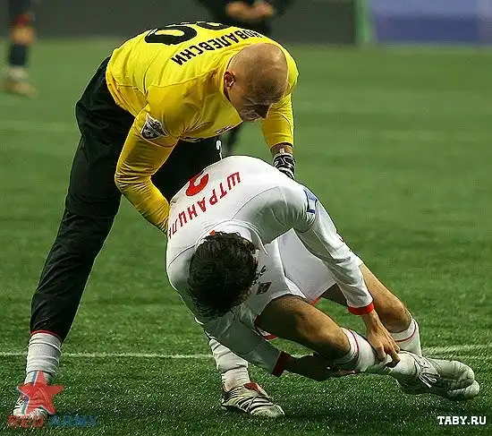 Между ног. Спорт - это опасно ;)
