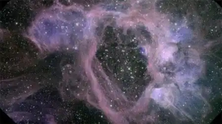 Эта большая, похожая на пузырь масса межзвездных пылевых облаков называется N44 superbubble complex. Она имеет длину 325 световых лет в апогее (точке наибольшего расширения), а дыра в центре образовалась по причине сильных солнечных ветров от массивных звезд, которые буквально "выдули" середину пузыря.