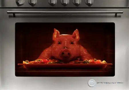 , а каким должен быть зажаренный, красный, кипящий в микроволновке поросенок? довольный жизнью?