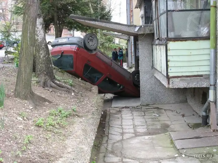 Судя по дому, это Россия, или "ближнее зарубежье". Вьехать в подъезд на крыше, это высший пилотаж!