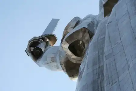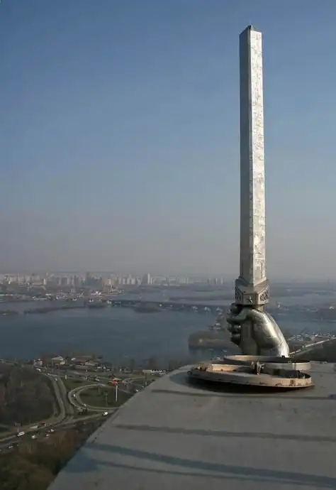 это же не Родина-мать, у той вторая рука в кулаке, а первая с мечом