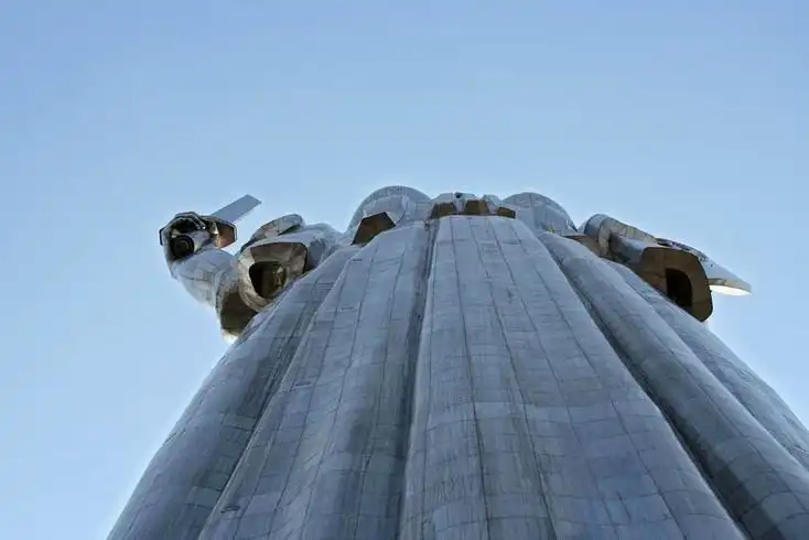 Самое интересное что первоначально мечь был титановый, но так как военные отказались делится технологией сварки титана, то мечь стал разваливаться и свистеть по щелям на весь город. Пришлось заменить на стальной.