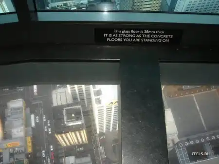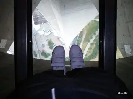 Там написано, что "толщина стекла 30мм и оно настолько же прочно, насколько бетонные полы, на которых вы стоите". И всё же страшно.