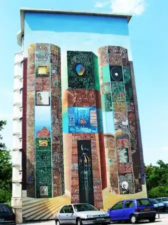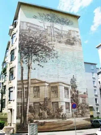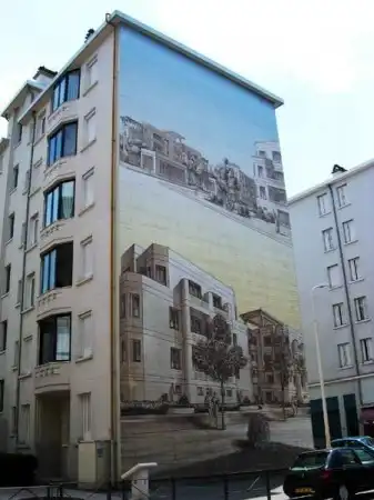 У нас в Томске тоже есть "настенная живопись" - на голой стене нарисовали окна и перекладины в стиле немецкой провинции.