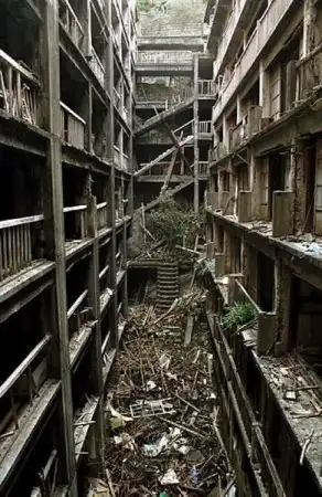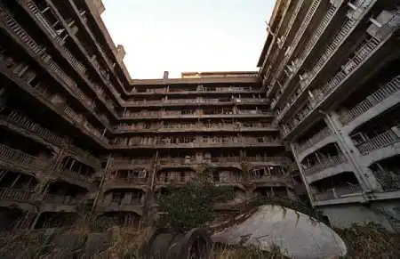 Остров Хашима (в переводе означает "Пограничный остров"), который обычно называют Гунканджима (означает "Остров боевых кораблей"), является одним из 505 островов в префектуре Нагасаки и находится на расстоянии 15 км от самого города Нагасаки. С 1887 по 1974 гг здесь были угольные копи. Остров изобилует заброшенными зданиями.