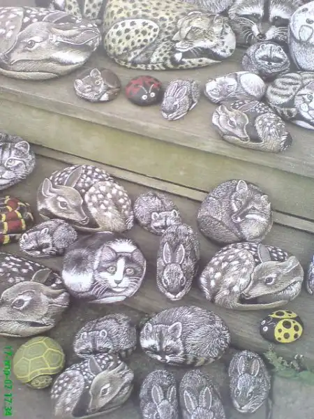 Сначала и не поняла, что это нарисовано на камнях, подумала что рисунки сделаны из каменй))