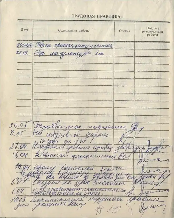 У меня ничего подобного нет, а жаль!Нам не пишут в дневник! Сразу докладная.... Так бы потом детям показать какая их мамочка была в их возрасте....