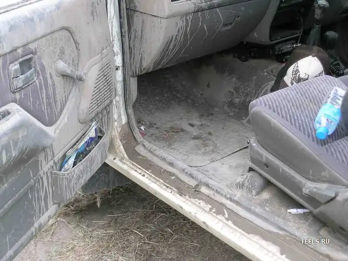 по грязи с открытыми окнами ) и у вас такое будет :)))