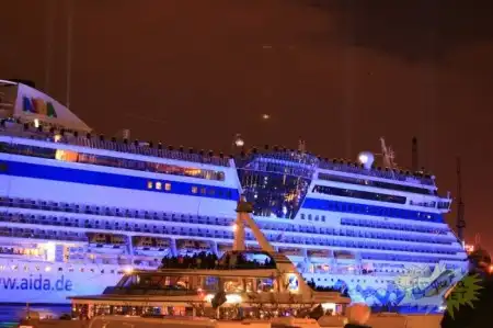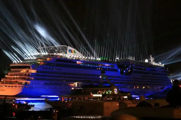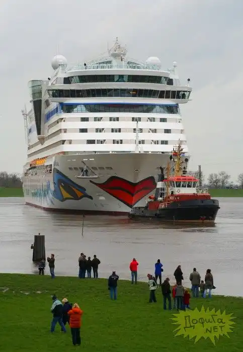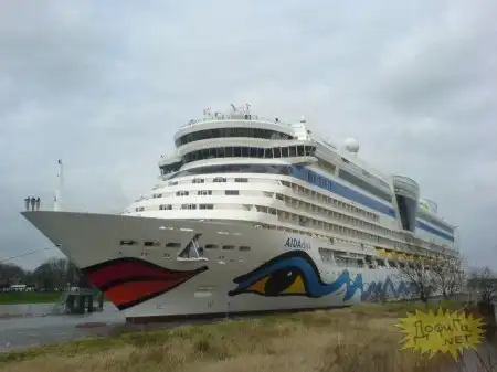Новое чудо кораблестроения пассажирский лайнер AIDADIVA был спущен на воду в Гамбурге , его длина составляет 253 метра, а на борту может разместиться 2500 пассажиров.