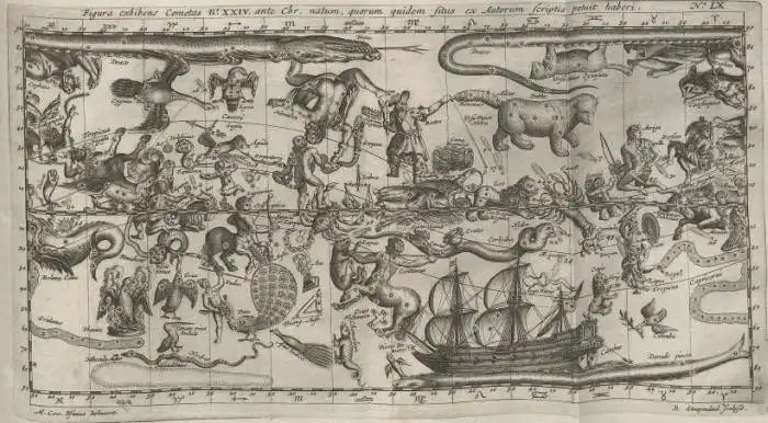 Это "Книга Комет" созданная польским ученым (Stanislaus Lubienietzki (1623-1675)) и впервые изданная в Амстердаме в 1668 году. Основой для книги стали наблюдения из обсерваторий в Европе в 1664-1665 годах.