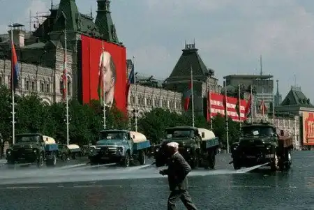 Фотография ГУМа в конце 1986 года. Вот такие вот рыцари освежали просторы столичных улиц.