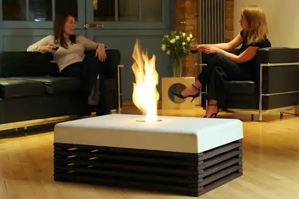 если что то он работает на специальном геле, который на основе спирта, от которого нету ни гари ни дыма