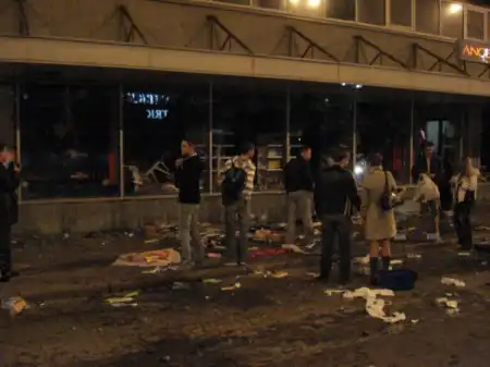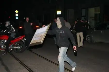 Пока в Эстонии жители протестуют против сноса-распиливания памятника Советскому Солдату, несознательная часть населения попутно грабит магазины, разбивая витрины. Досадно, что защитников памятника обвинят в деяниях этих мародёров.